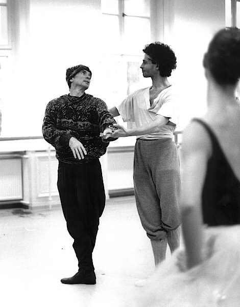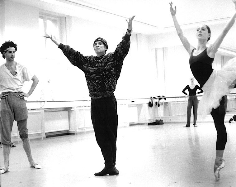 Rudolf Nurejew für Proben zu seinem Dornröschen in den Ballettsälen der Staatsoper Unter den Linden: [1] und [2] mit Victoria Lahiguera (Prinzessin Aurora) und Jörg Lucas (Prinz Desiré) [3] mit Patricia Ruanne, Patrice Bart und Egon Bischoff (im Hintergrund). Fotos: Christine Gruchot
