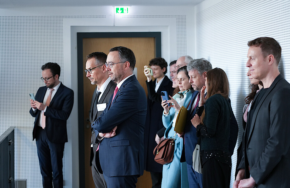 Im Rahmen eines Rundgangs durch die Ballettsäle gewährten Intendant Christian Spuck und Geschäftsführerin Jenny Mahr zudem Einblicke in die tägliche Arbeit sowie hinter die Kulissen des Balletts.