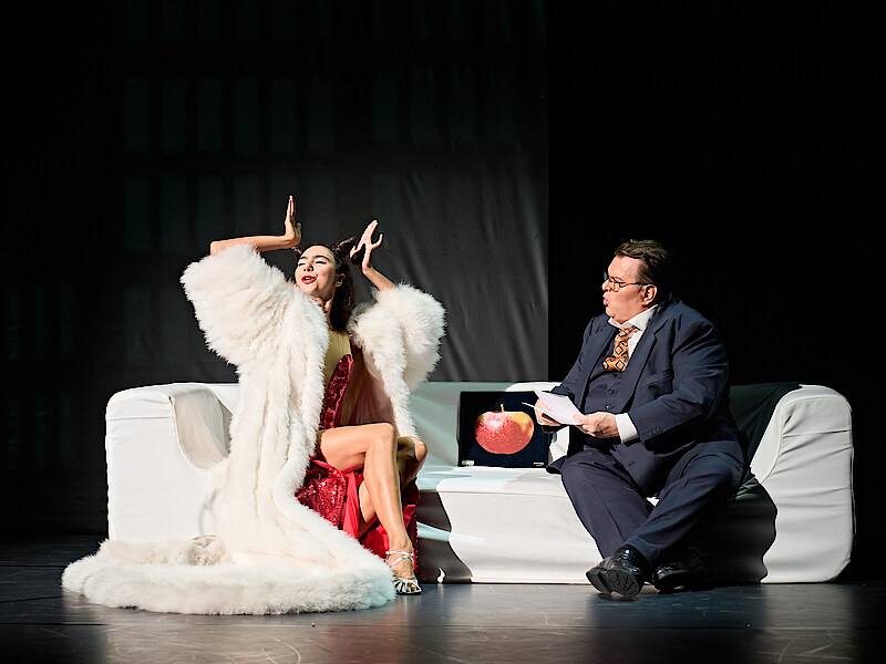 DWS Als ich ein Kind war, haben wir nur einen Fernseher zu Hause gehabt. Wenn ich Videospiele gespielt habe und die Nachrichten anfingen, musste ich das Spiel ausschalten, obwohl ich natürlich weiterspielen wollte. Dann gab es oft Diskussionen mit meinen Eltern: Soll ich sehen, was in der echten Welt passiert, oder darf ich noch ein bisschen in meiner Fantasiewelt bleiben? Und das ist eigentlich ein schönes Bild für die Welt, in der wir heute leben. Damals war es der Streit um den Fernseher, heute passiert etwas Ähnliches in den sozialen Medien. Im Stück greife ich das auf: Die Prinzessin und der Prinz bewegen sich zwischen Realität und digitaler Welt. Teilweise verschwimmen diese beiden Welten und die Wirklichkeit kann sich wie eine schlechte Fantasie anfühlen. Der Prinz und die Prinzessin müssen damit umgehen. Es geht also auch darum, wie man sich zurechtfindet, wenn die Realität nicht mehr klar von der Fantasie zu trennen ist und wie man trotzdem seinen eigenen Weg geht.